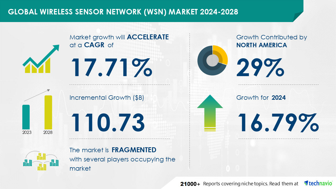 El mercado global de redes de sensores inalámbricos (WSN) está registrando un crecimiento acelerado y se espera que alcance una tasa compuesta anual del 17,71% entre 2023 y 2028, con una expansión estimada en 110.730 millones de dólares durante el periodo, según un informe de Technavio. Este crecimiento está siendo impulsado por la adopción de la Industria 4.0, la proliferación de tecnologías portátiles (wearables) y la integración de sensores en procesos de fabricación inteligente.