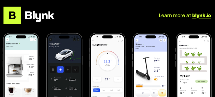 - Aprovisionamiento seguro y conexión instantánea con chips ESP32, aplicaciones móviles de Blynk y el cloud.